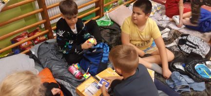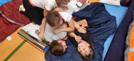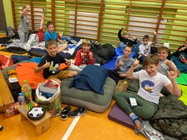 Uczniowie przyszli odpowiednio wyposażeni w poduszki, śpiwory i oczywiście dobre humory. Nie zabrakło oczywiście słodkich przekąsek i pizzy. Po całonocnej imprezie nasi podopieczni rozeszli się do domów z nadzieją ,że nie była to ostatnia noc w szkole.