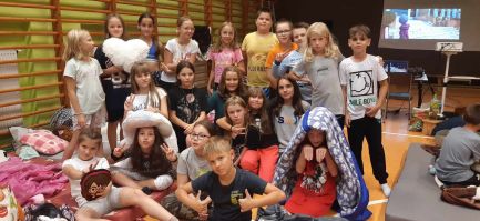 W drugim tygodniu września klasy: 4a, 5a oraz 6c z wychowawczyniami p. Aleksandrą Urban, p. Dagmarą Ulańską, p. Klaudią Kobydecką spędziły Filmową Noc w szkole.