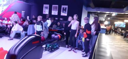 Wycieczka na kręgle była wspaniałą rozrywką dla naszych uczniów. Gra okazała się niezwykle wciągająca, a uczniowie świetnie radzili sobie z tą nową dla nich dyscypliną sportu. Dużą frajdą było zbijanie kręgli i zdobywanie punktów. Pobyt w kręgielni dostarczył dzieciom wielu niezapomnianych wrażeń i emocji. Okazał się fantastycznym sposobem aktywności ruchowej, zabawy i integracji innej niż dotychczas. Po świetnej zabawie udaliśmy się do stolików na małe co nieco :).