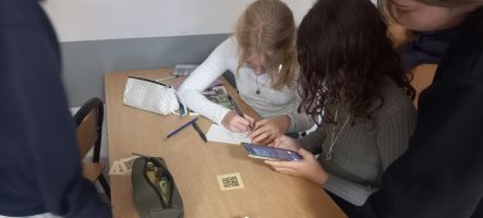 Uczniowie zostali podzieleni na małe grupy, każda grupa otrzymała zestaw kartek z kodami QR. Po zeskanowaniu kodu telefonem na ekranie pojawiała się informacja o jednej z tajemnic różańca (np. „Zwiastowanie Najświętszej Maryi Pannie ). Zadaniem uczniów było przyporządkowanie tajemnic do odpowiednich części różańca (radosne, światła, bolesne, chwalebne), a następnie ułożenie ich w prawidłowej kolejności.