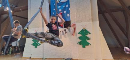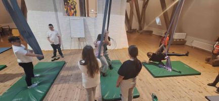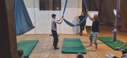 Punktem kulminacyjnym wspólnych warsztatów było przedstawienie, podczas którego uczestnicy zaprezentowali układy taneczne przygotowane podczas zajęć. Jednym z najbardziej widowiskowych punktów programu były figury wykonywane na szarfach. Dzieci, pod okiem instruktora, zaprezentowały elementy akrobatyki powietrznej. Przedstawienie oglądali rodzice, dziadkowie i zaproszeni goście.