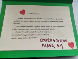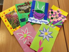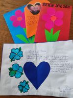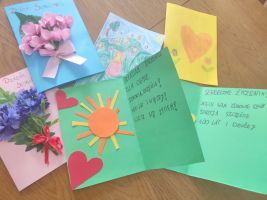 p. Natalii Hovdiak za wykonanie cudownych kwiatów oraz p. Emilii Jastrzębskiej za wykonanie przepięknych kartek z życzeniami dla naszych Seniorów.
